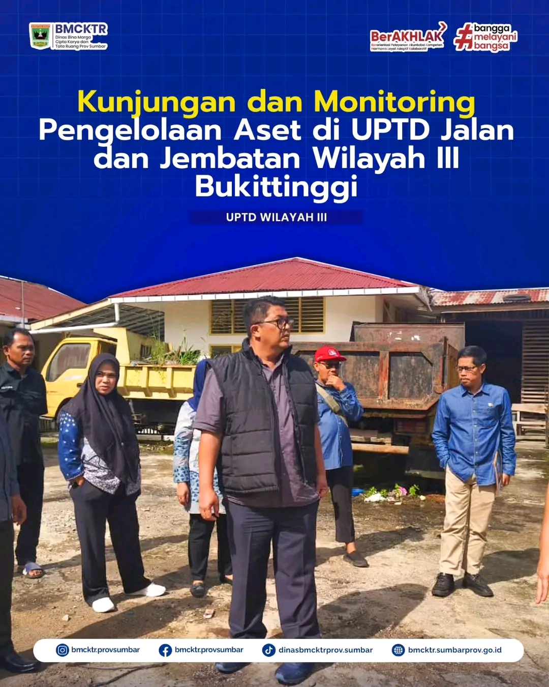 Padang - 12 Februari 2026, Kepala Dinas Bina Marga, Cipta Karya dan Tata Ruang Provinsi Sumatera Barat melaksanakan kunjungan kerja sekaligus monitoring pengelolaan aset di Kantor UPTD Jalan dan Jembatan Wilayah III Bukittinggi. Kegiatan ini merupakan bagian dari upaya pembinaan serta pengawasan terhadap aset daerah yang berada di bawah pengelolaan unit pelaksana teknis. Dalam kunjungan tersebut, dilakukan peninjauan terhadap kondisi fisik aset, kelengkapan administrasi, serta tata kelola pemanfaatan aset agar tetap sesuai dengan ketentuan yang berlaku. Monitoring ini bertujuan untuk memastikan seluruh aset dikelola secara tertib, transparan, dan optimal, sehingga dapat menunjang kelancaran tugas dan fungsi UPTD dalam pelayanan infrastruktur jalan dan jembatan. Melalui kegiatan ini, diharapkan pengelolaan aset daerah semakin baik dan berkelanjutan, serta mampu mendukung peningkatan kualitas pelayanan infrastruktur yang efektif, efisien, dan berorientasi pada kepentingan masyarakat.